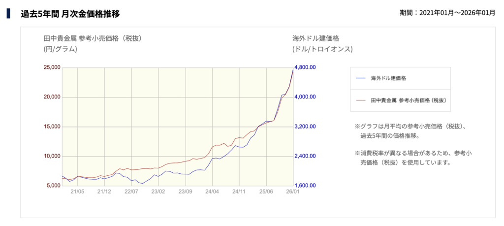 長らくゴールド(金)の高騰ばかりが注目されてきましたが、ここに来てプラチナの価格上昇が顕著です。2026年には供給不足により、トロイオンスあたり2,000ドル〜2,450ドルを目指すという予測も出ています。まだゴールドほど高騰しきっていない今のうちに、純度の高い「Pt950」などを仕込んでおくのも賢い戦略です。